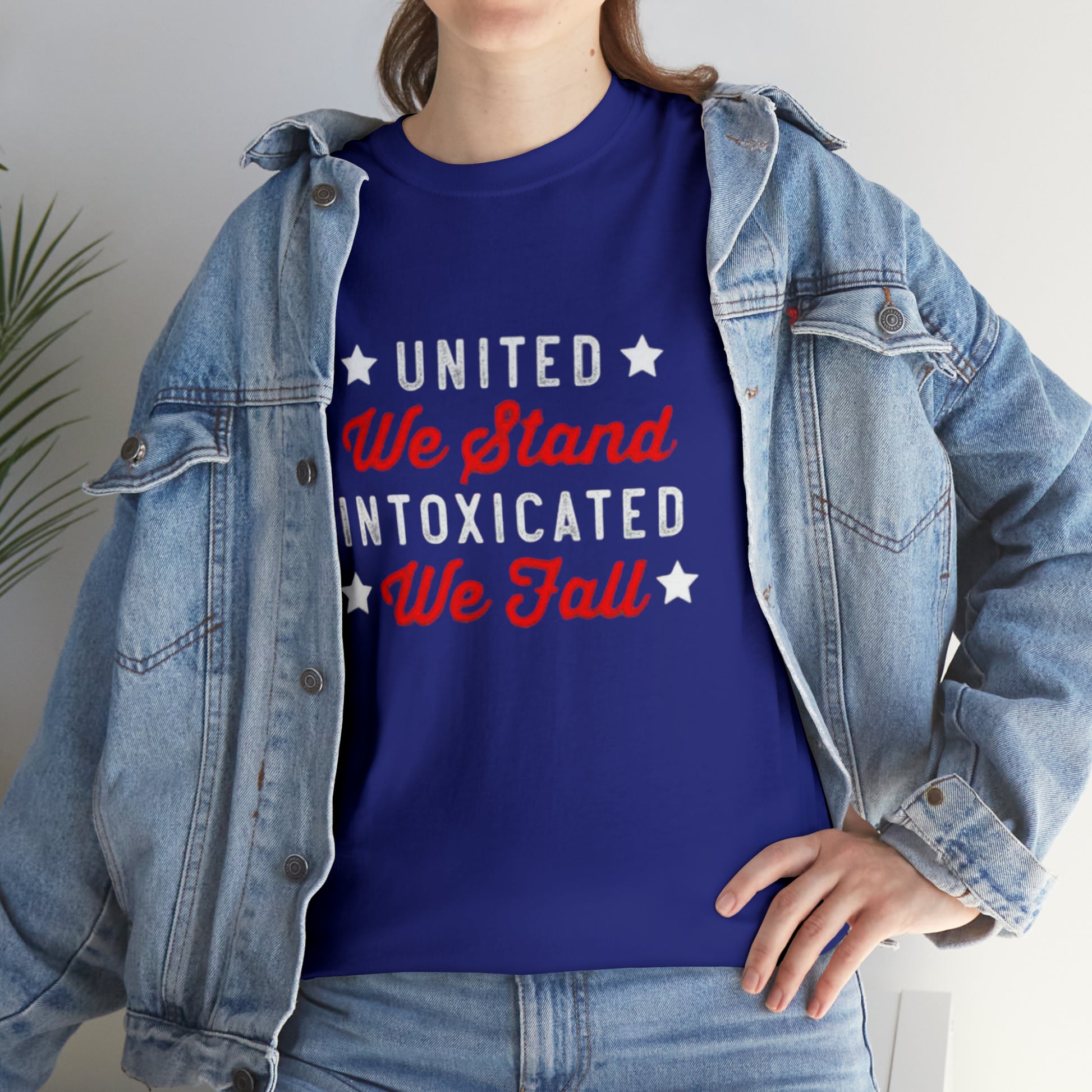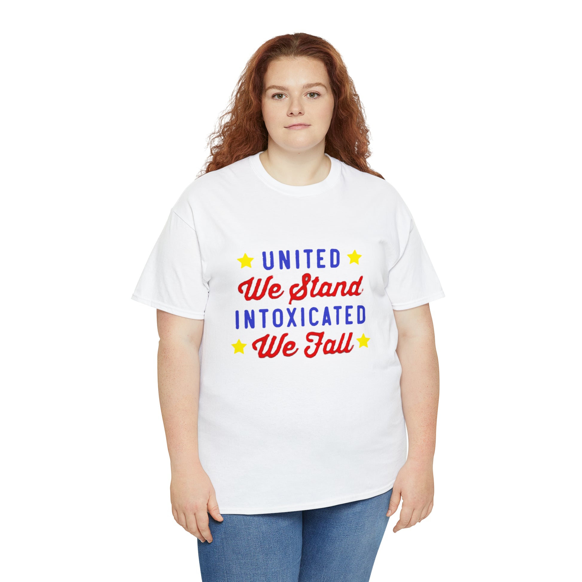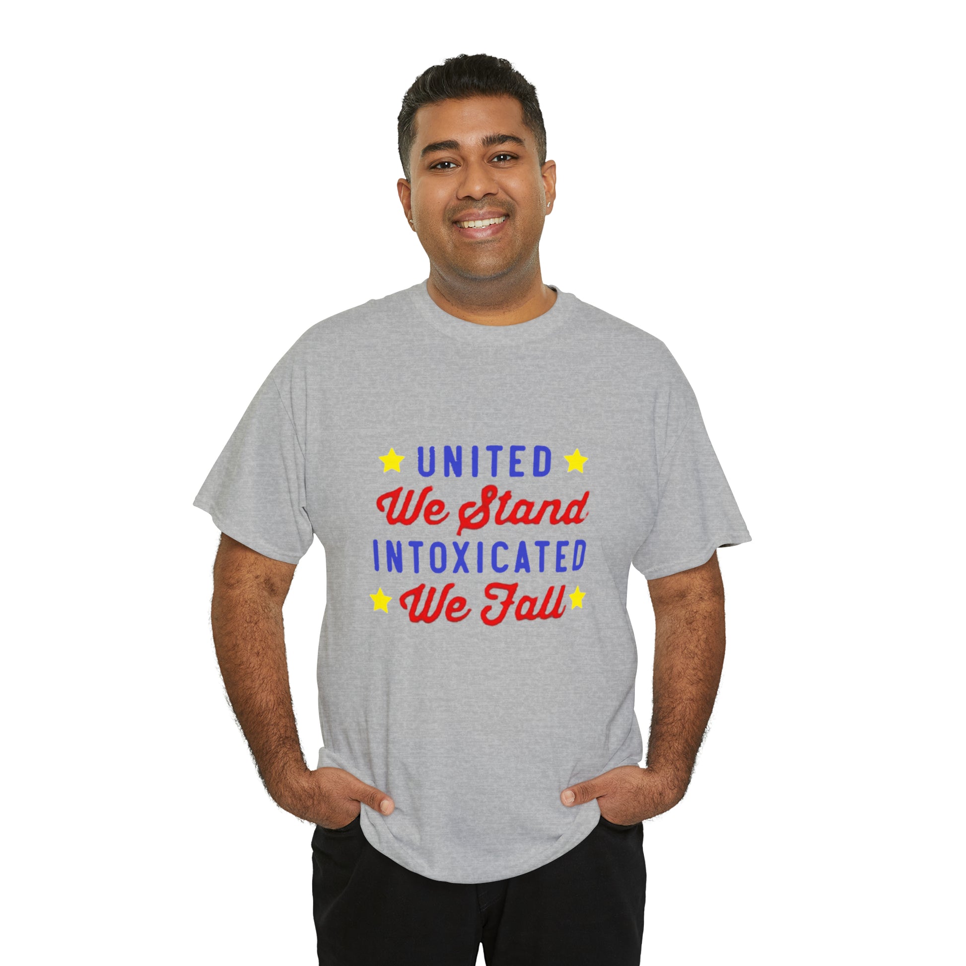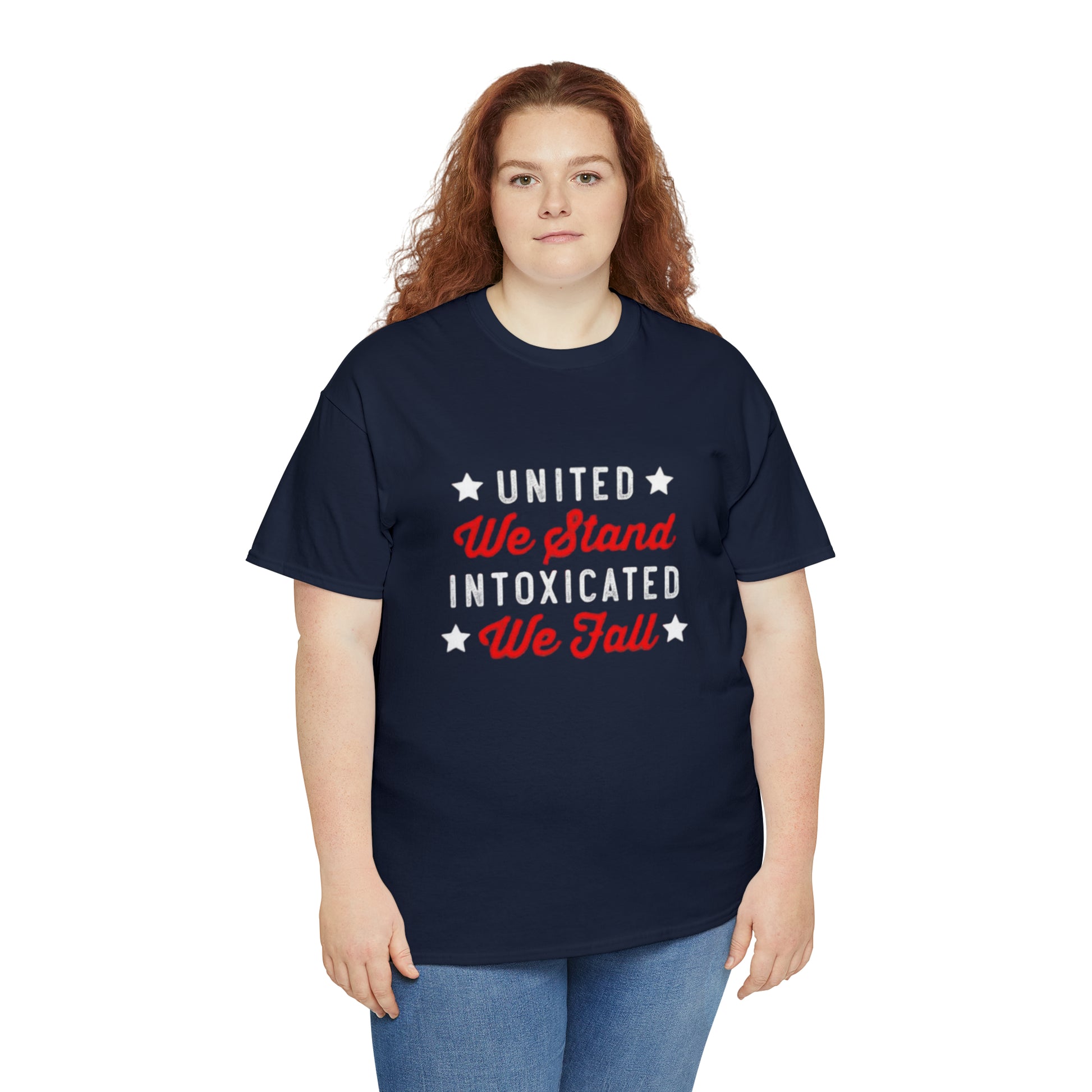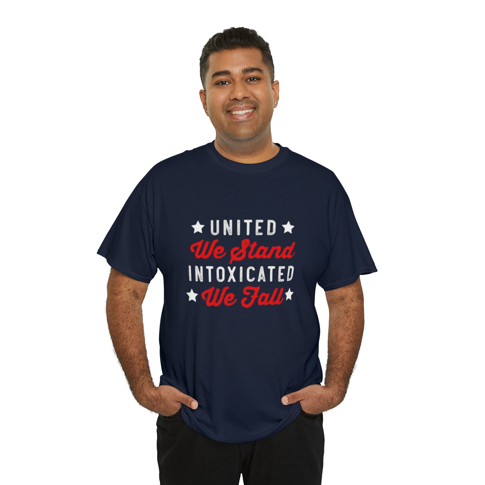 Unite in laughter, stumble in mirth! The "United we stand, intoxicated we fall" shirt brings humor and camaraderie together. Celebrate wild nights and unforgettable memories, reminding everyone that unity can lead to hilarious adventures. This shirt is a playful reminder to cherish friends, shared experiences, and the joy of letting loose. Get ready to raise spirits and eyebrows with this comical statement piece!